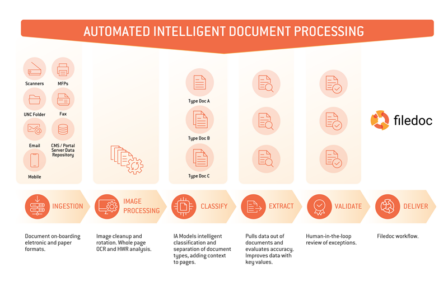 El procesamiento inteligente de documentos (IDP, por sus siglas en inglés) aplica técnicas de inteligencia artificial (IA) y de aprendizaje automático (Machine Learning) para procesar documentos estructurados y no estructurados, lo que permite que la tecnología lea y procese el contenido de los documentos como lo haría un ser humano.
